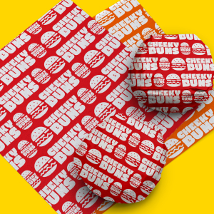 A person enjoying food on a park bench or during a walk will see a sheet supporting the food at every bite. That subtle support adds to overall enjoyment. Enjoyment builds connection between customer and food place.