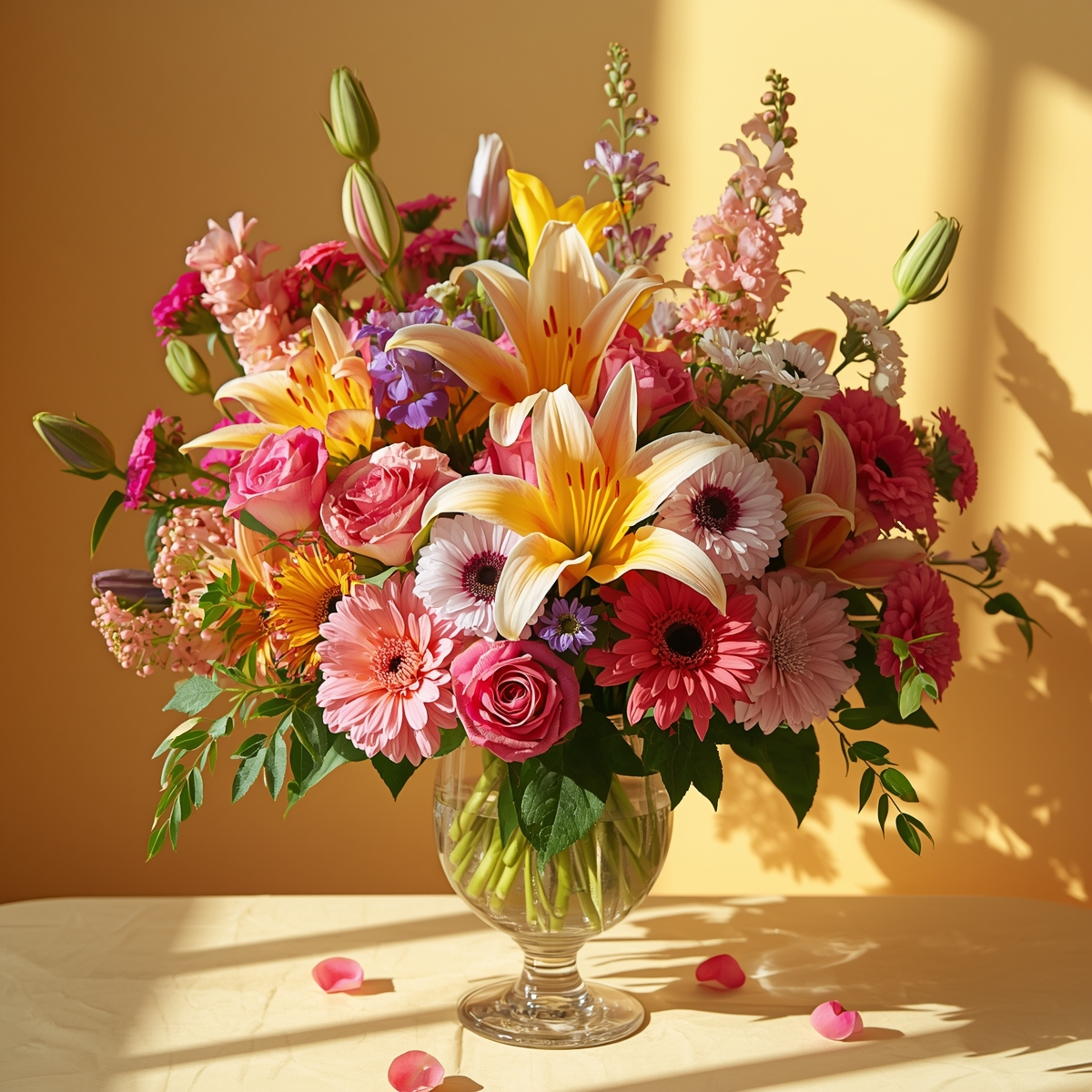 Mix Colors and Textures: Combine large blooms with delicate filler flowers to create depth.