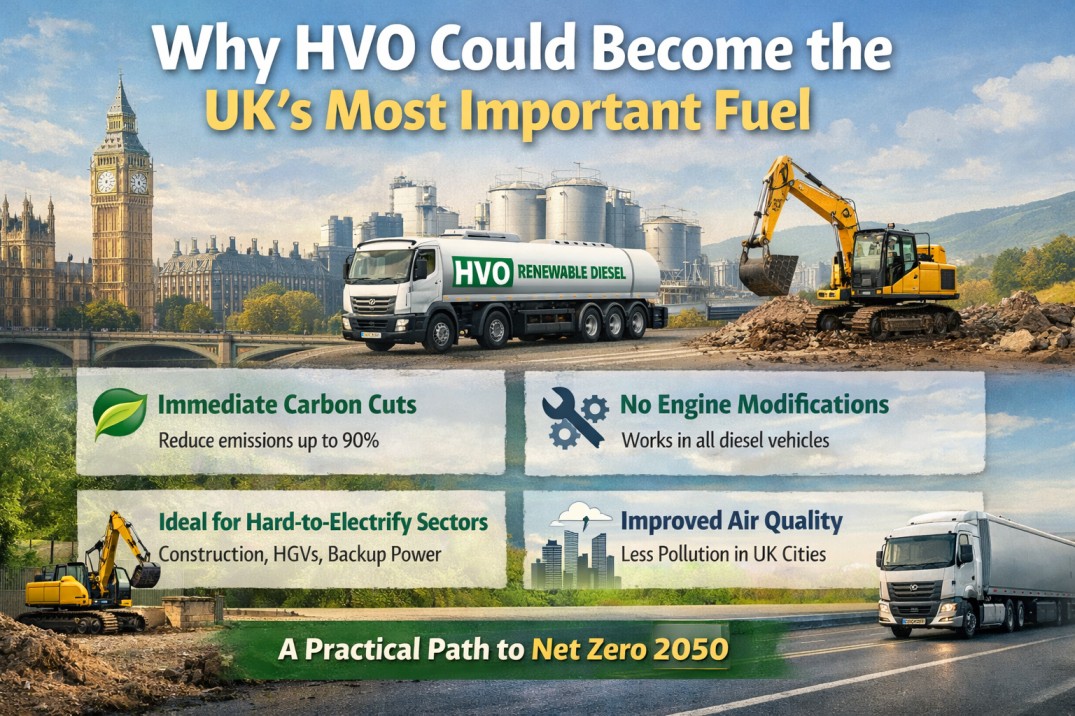 HVO may not yet be a household name across the United Kingdom, but in commercial fleets, construction sites, agriculture, and even public transport, it is fast becoming one of the most realistic pathways to immediate carbon reduction. The question is no longer “What is HVO?” but rather “Could HVO become the UK’s most important fuel?”