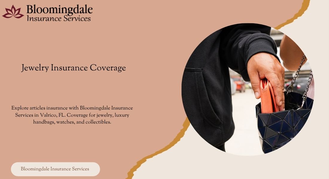 In an unpredictable world, safeguarding your prized possessions is essential. Bloomingdale Insurance Services in Valrico, FL, offers specialized Jewelry insurance coverage that protects your most valuable assets. Whether it’s a family heirloom, a luxury handbag, a collectible watch, or a piece of art, articles insurance provides peace of mind by covering theft, accidental loss, or damage.